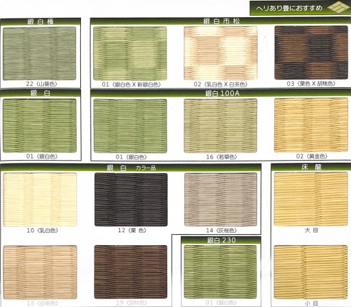 最近話題になっている和紙表です 様々な色を選ぶことが出来ます 変色せずダニやカビ等が発生しにくい畳表です | |