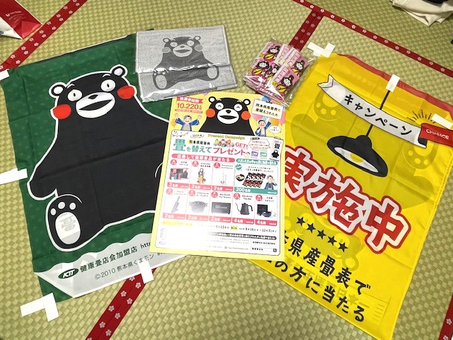【くまもんタオル】or【入浴剤】がその場で当たるスクラッチクジ